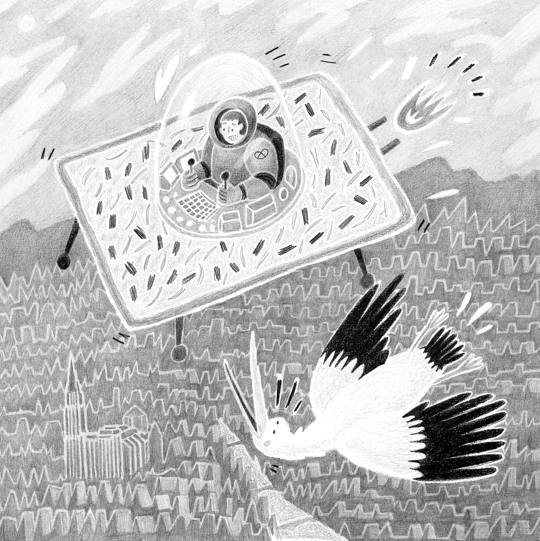 Le vol, crayon sur papier, 30 x 30 cm, 2024