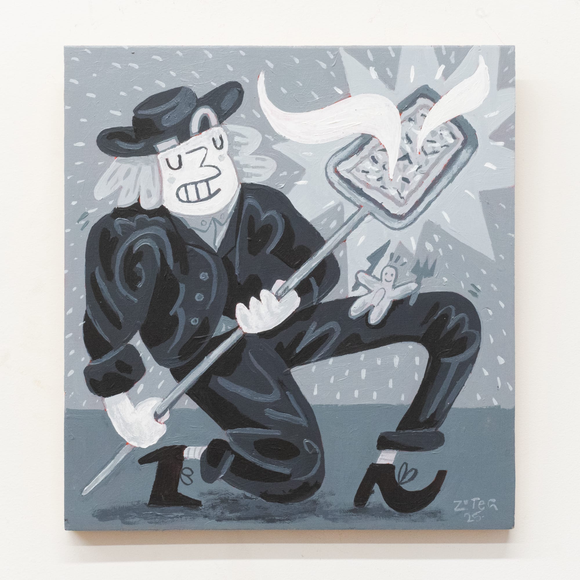 Une p'tite tarte flambée ?, acrylique sur bois, 28 x 30 cm, 2025