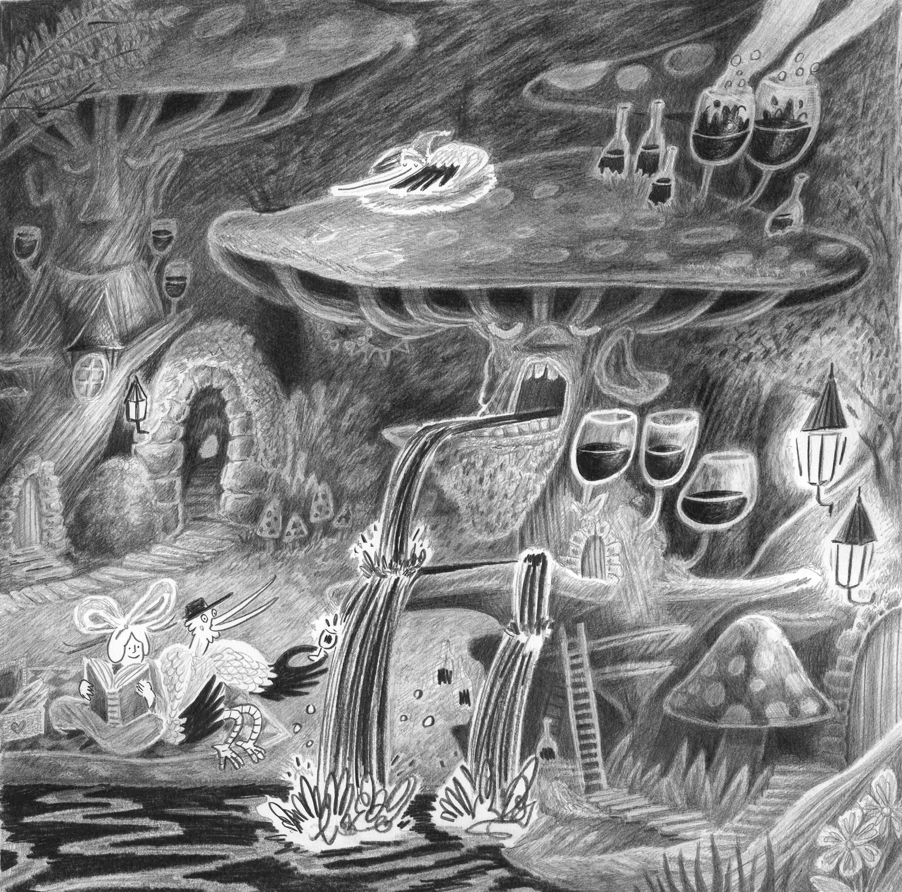 Au pays du vin, crayon sur papier 2021, 30 x 30 cm
