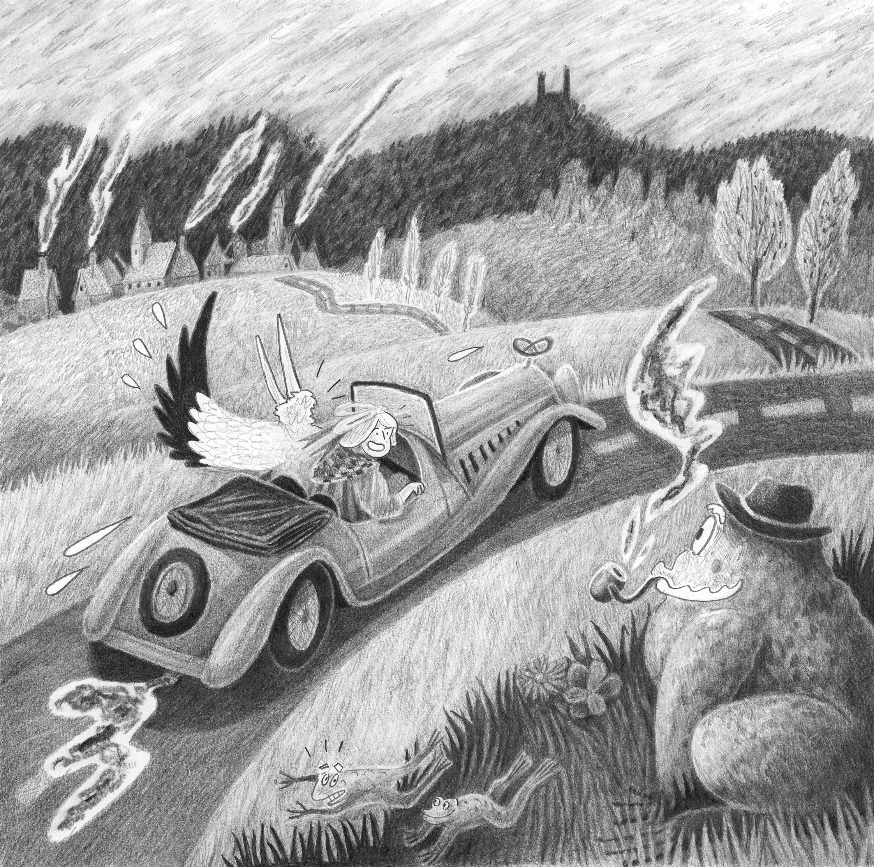 Wolpertinger & chaudron de bière, crayon sur papier 2022, 42 x 28 cm