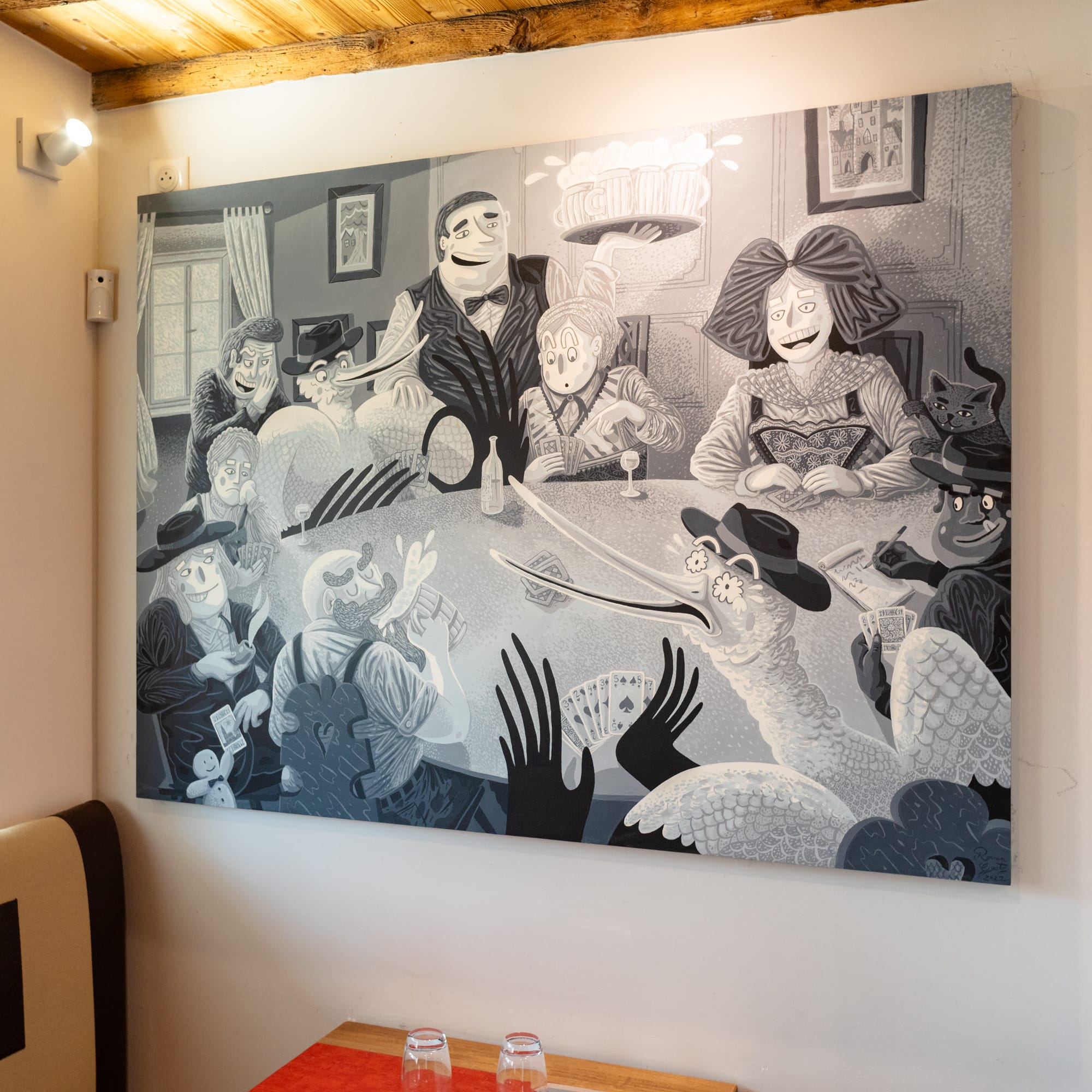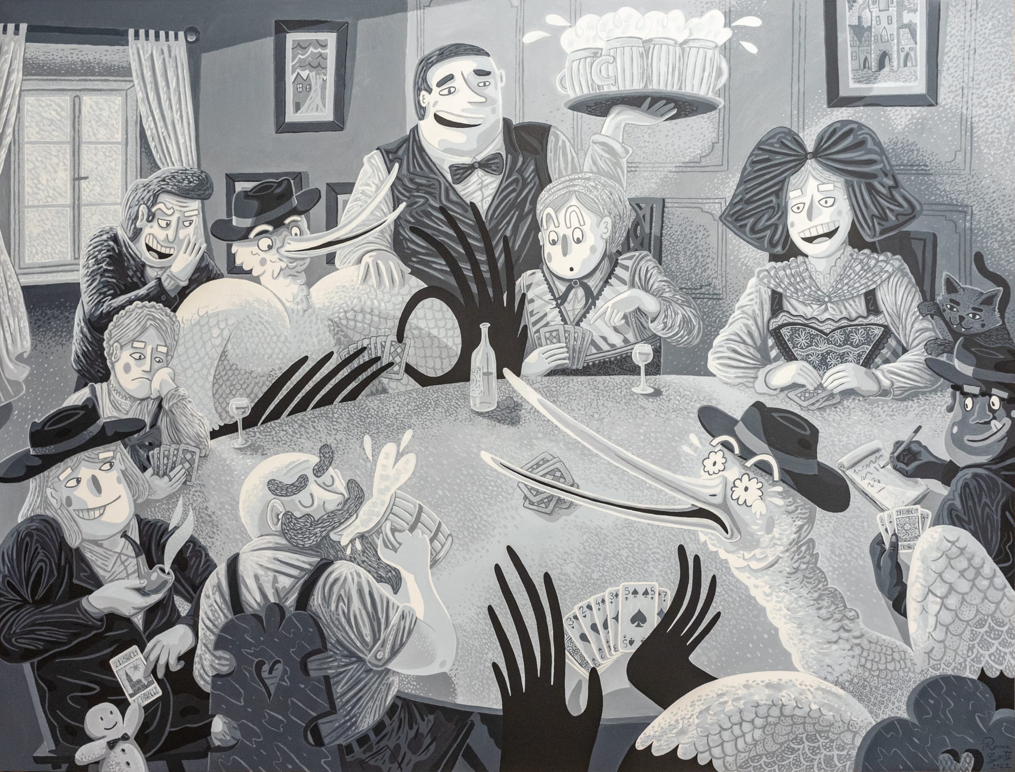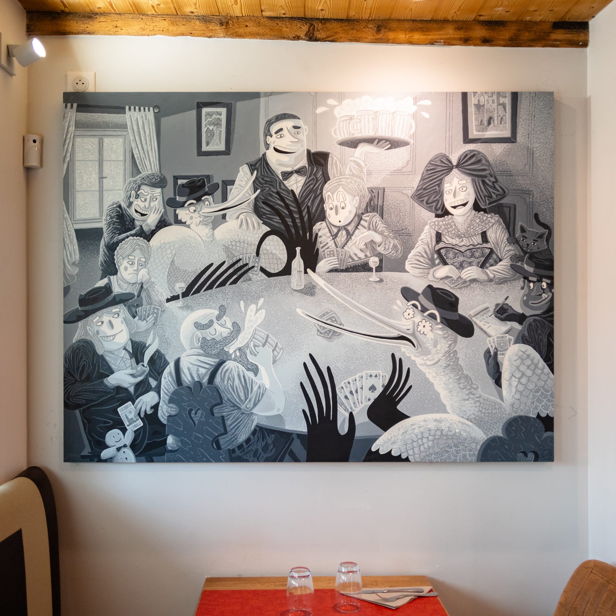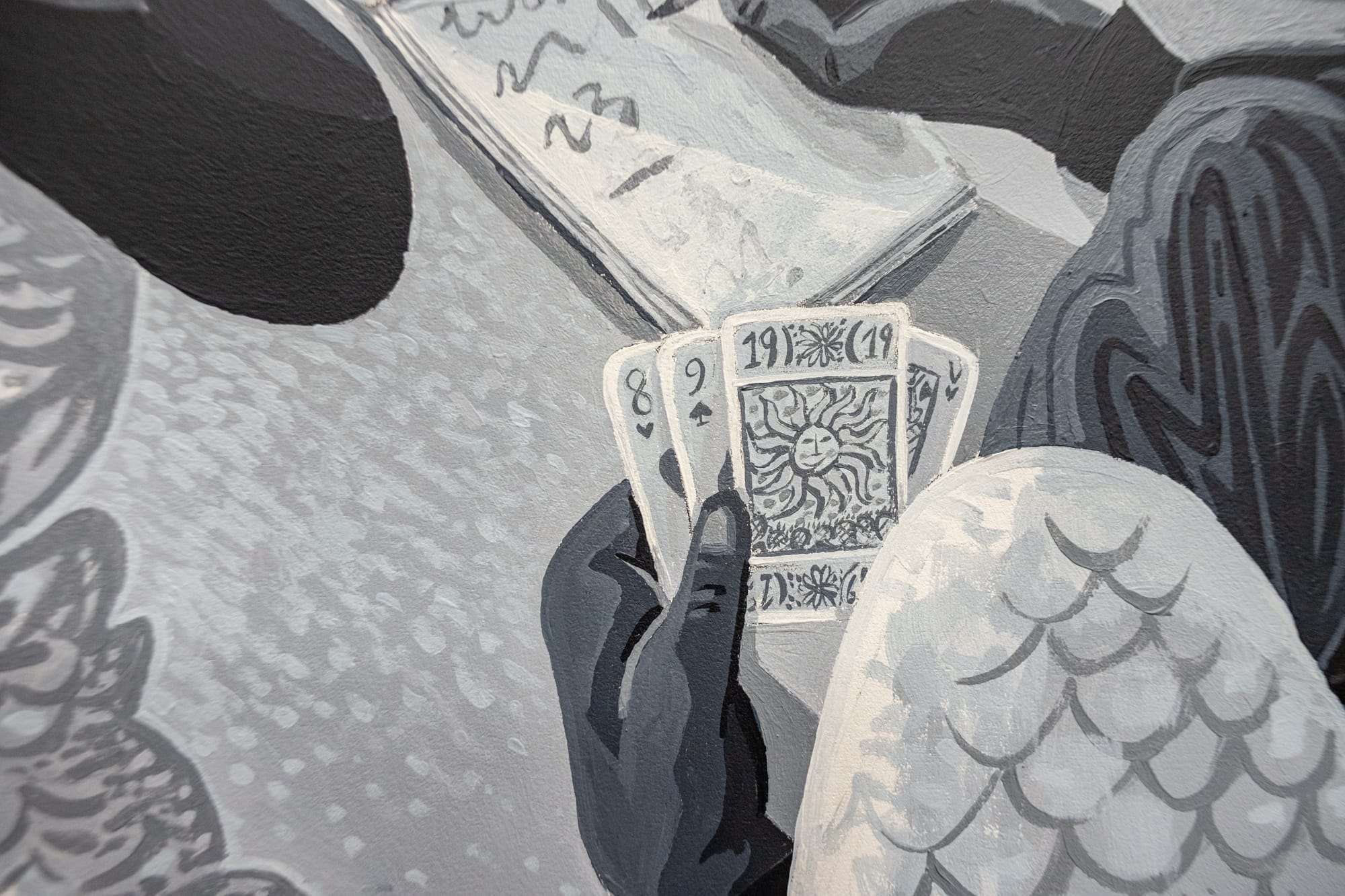 La partie de tarot, acrylique sur bois · ?? m x ?? m· juillet 2021