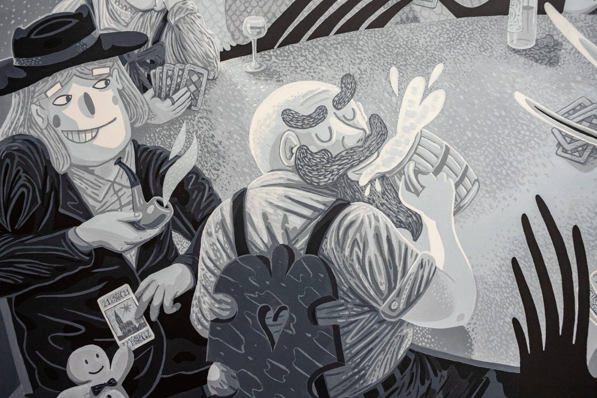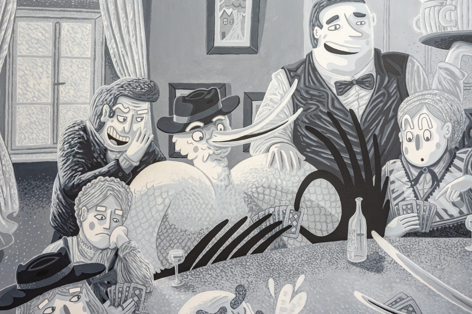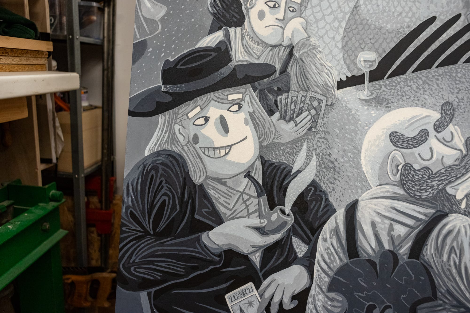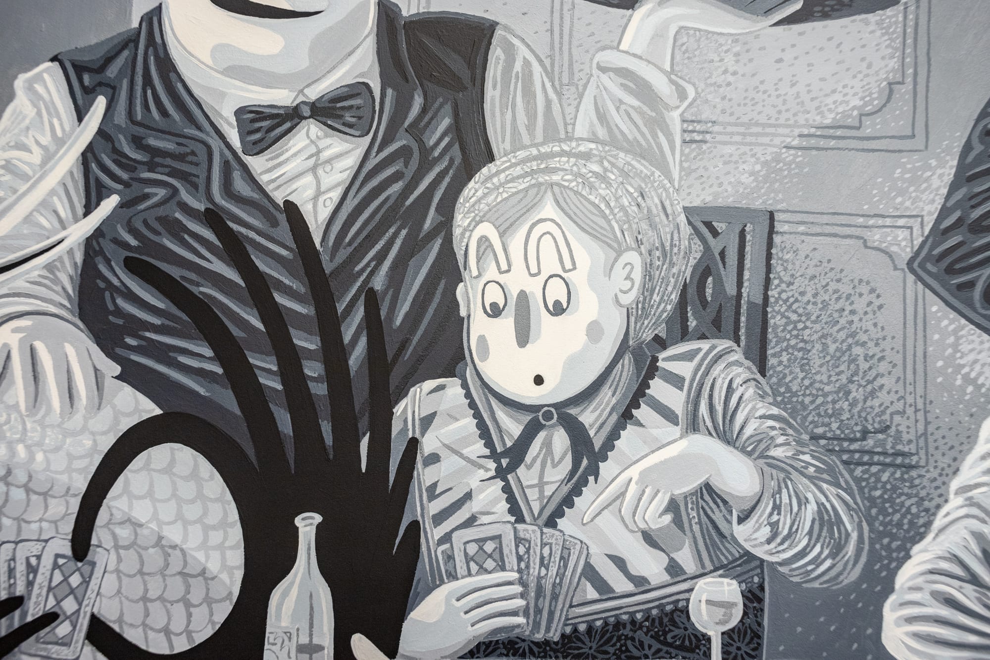La partie de tarot, acrylique sur bois · ?? m x ?? m· juillet 2021