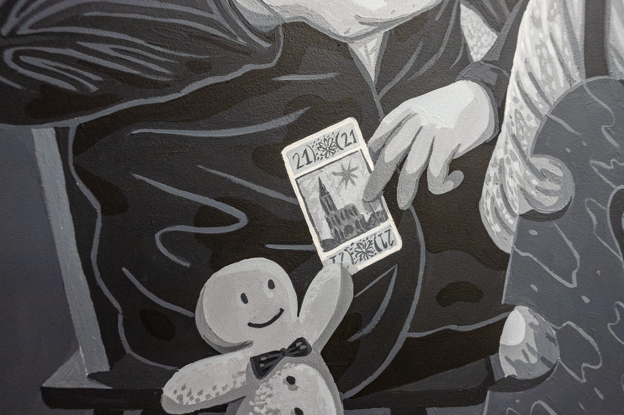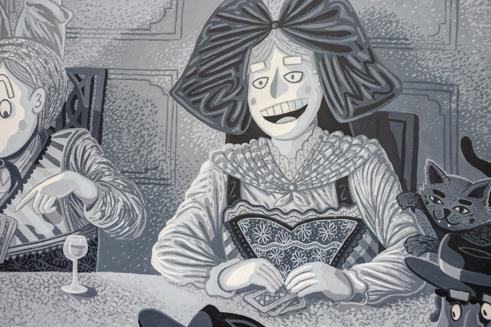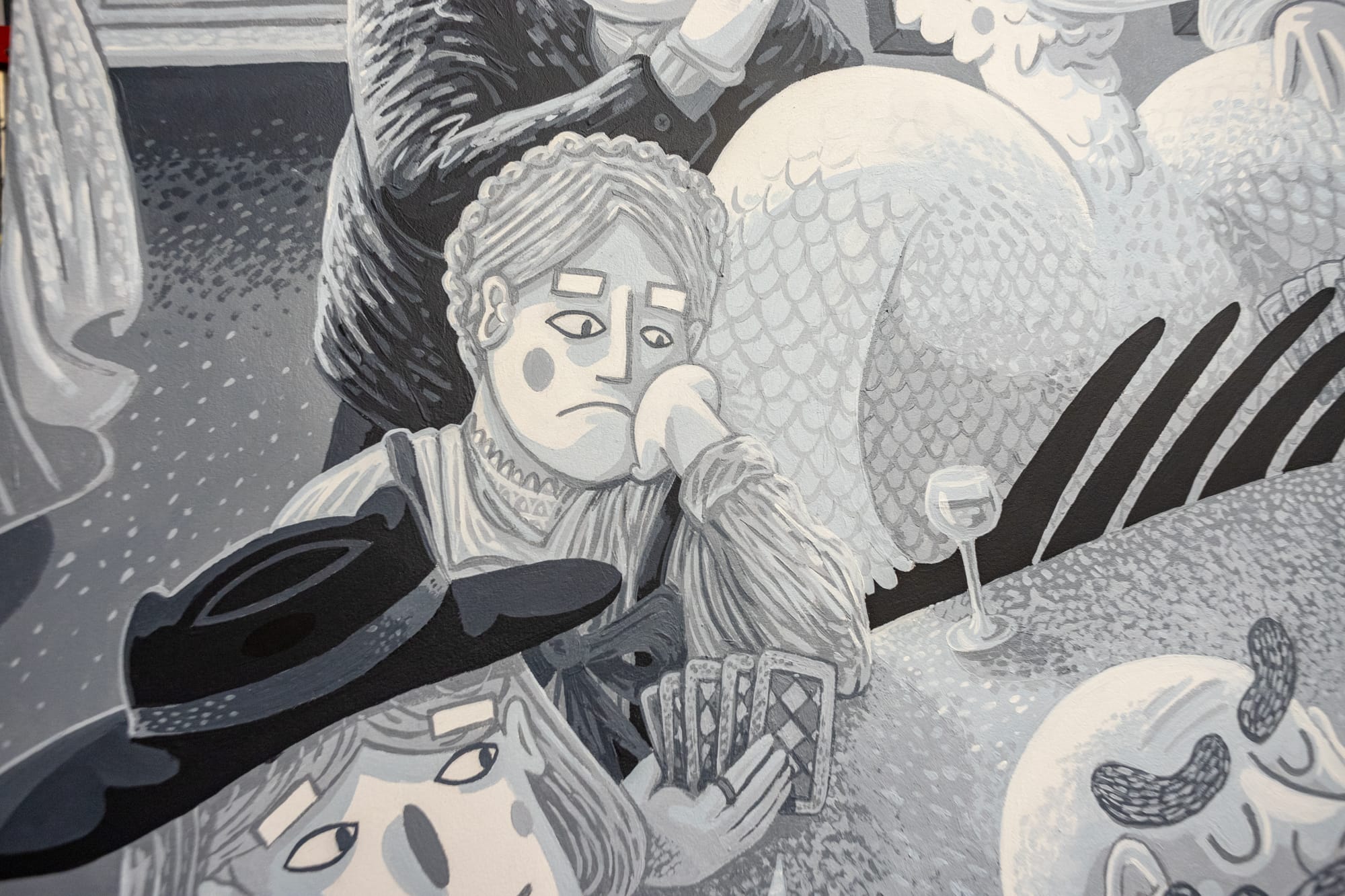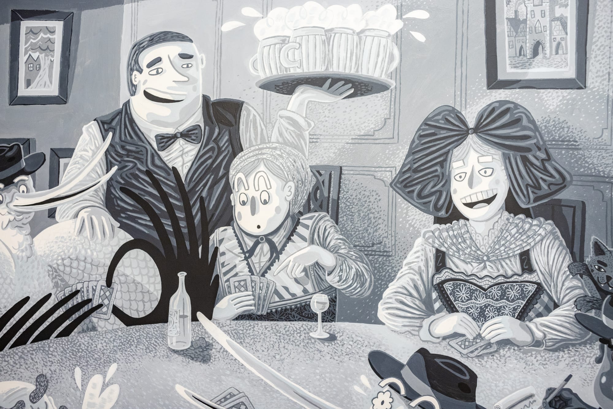 La partie de tarot, acrylique sur bois · ?? m x ?? m· juillet 2021